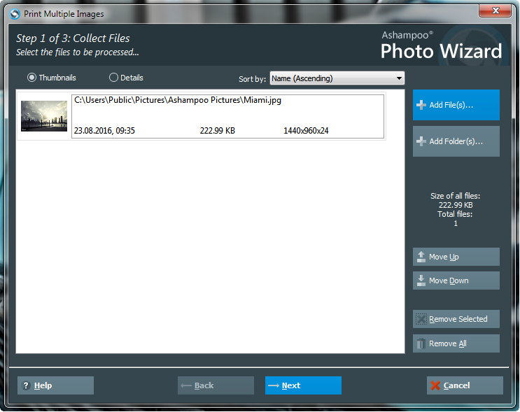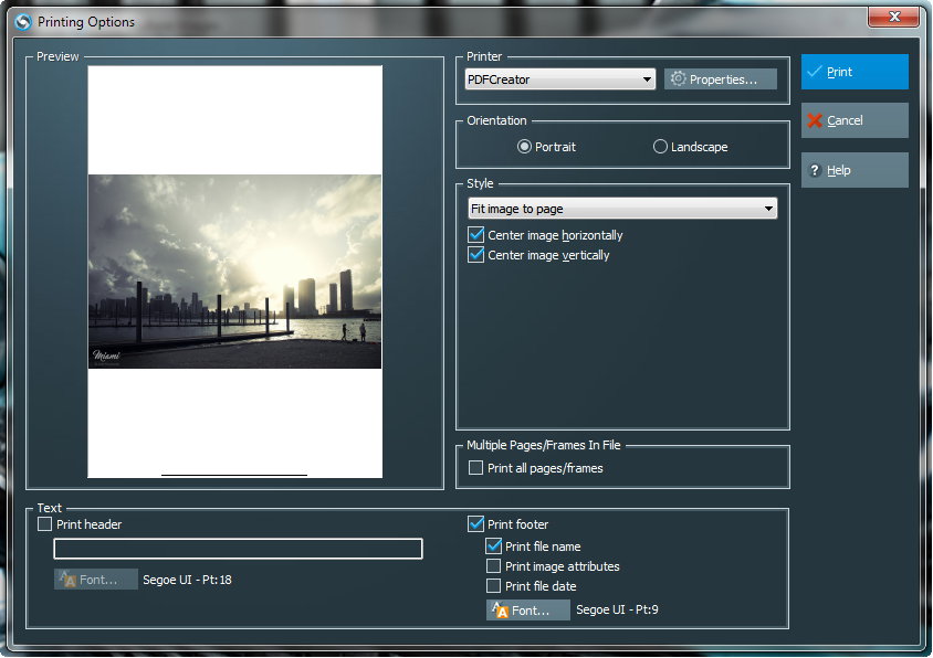 まず、印刷するイメージを選択する必要があります。現在の画像が自動的に挿入されます。次のセクションの印刷設定は、 クラシック印刷と同じです。