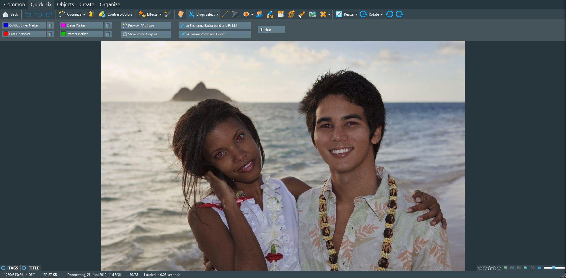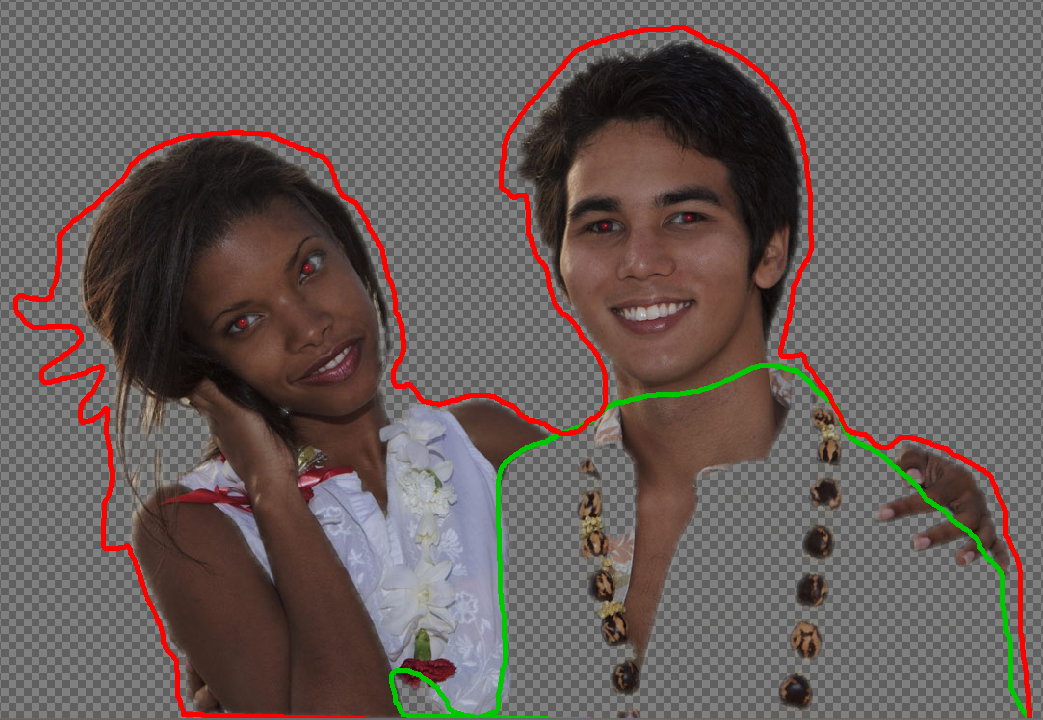青とピンクのマーカーを使用して、画像の一部を選択の一部としてマークしたり、いずれの場合も一部を削除したりします。