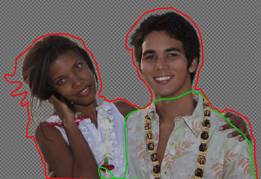 欠落している画像部分の色は背景にあまりにも似ているので、それらは含まれていない。緑色のマーカーを使用して、影響を受けた領域を囲み、それらを抽出物に含める。