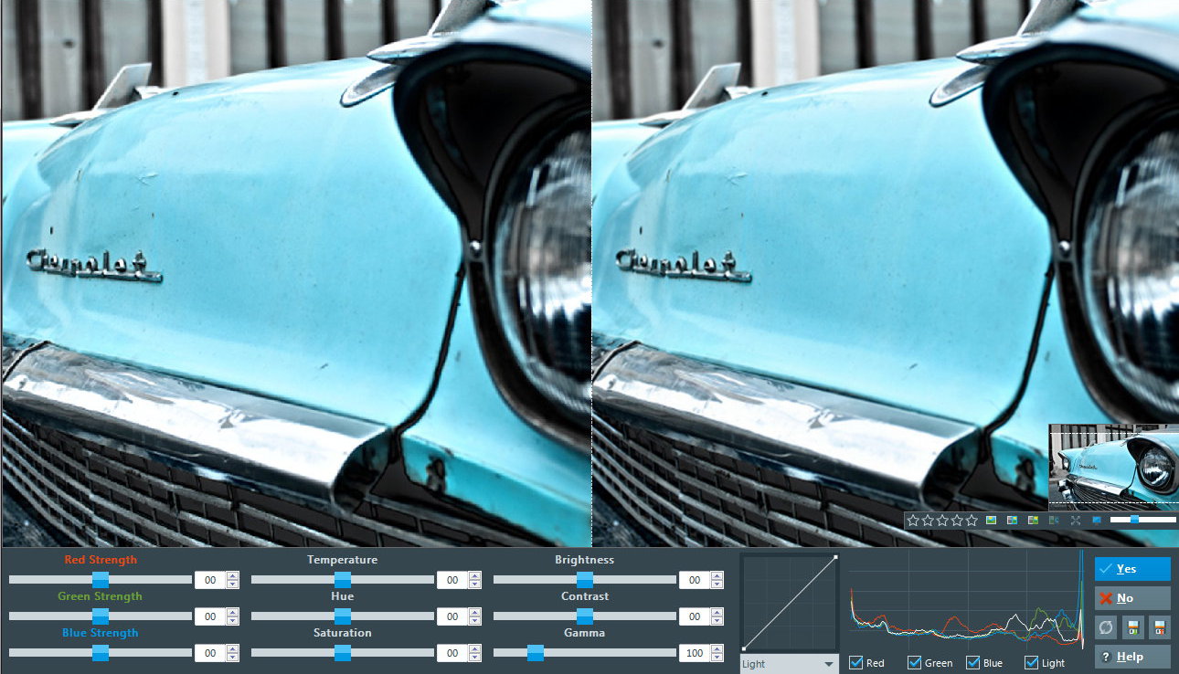 これらのコントロールを使用すると、すべての設定を元に戻したり保存したりすることができます。たとえば、他の画像に簡単に適用できます。