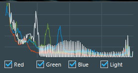 ヒストグラムはカラーバランスを把握するのに役立ちます。クリックすると個々のコンポーネントを非表示/表示します。