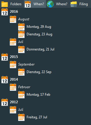 このビューでは、現在のフォルダ選択を作成日までフィルタリングできます。選択した日付に一致するファイルのみが表示されます。