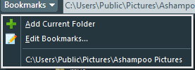 このドロップダウンメニューでは、現在のフォルダパスをブックマークすることができます。既存のブックマークを削除するには、[ブックマークの編集...]を使用します。
