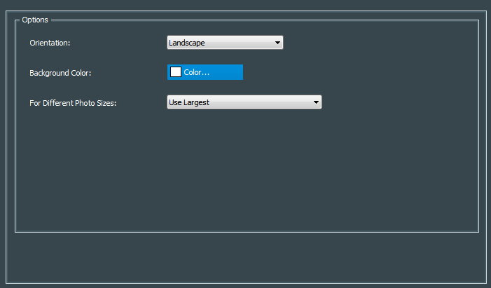 画像の向き、背景色、写真のサイズを選択するだけです。サイズの設定によって、サイズの異なる画像をどのように組み合わせるかが決まります。