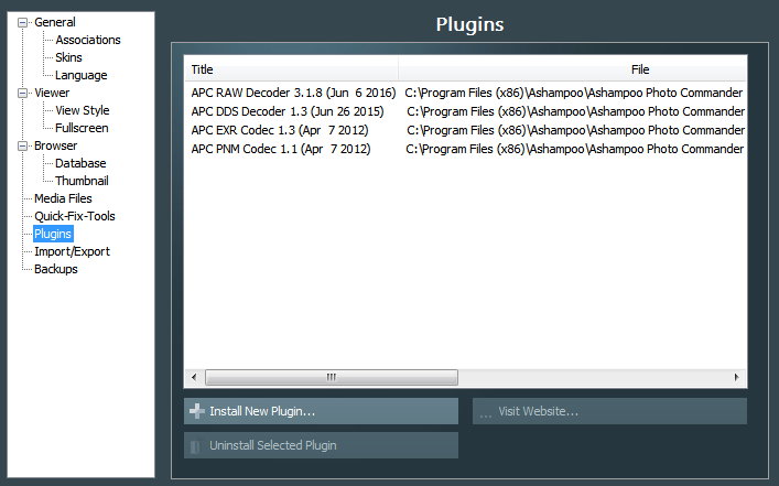 Ashampoo Photo Commander 15には、追加のプラグインをインストールして、必要に応じて追加ファイル形式をサポートできるプラグインシステムが付属しています。プラグインを開発/適応する予定の場合は、必要なSDK(ソフトウェア開発キット)を当社から無料で入手することができます。[email protected]までご連絡ください 。