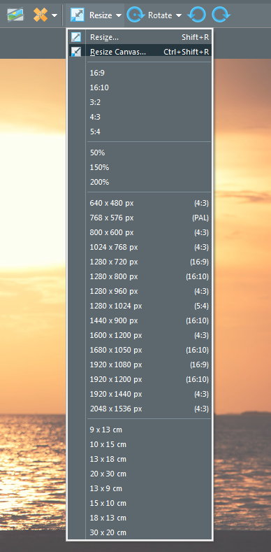 ナビゲーション: 写真の編集 > クイックフィックス > サイズ変更 >