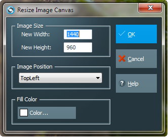 この機能を使用すると、イメージが配置されているキャンバスのサイズを変更できます。キャンバスのサイズがイメージのサイズを超えている場合は、イメージの周りに余分なスペースを与える境界線があります(例:メモを付ける)。キャンバスのサイズを変更したら、イメージの位置を決めるために「イメージ位置」を使用します。「塗りつぶし色」を使用して、罫線の色を決定します。