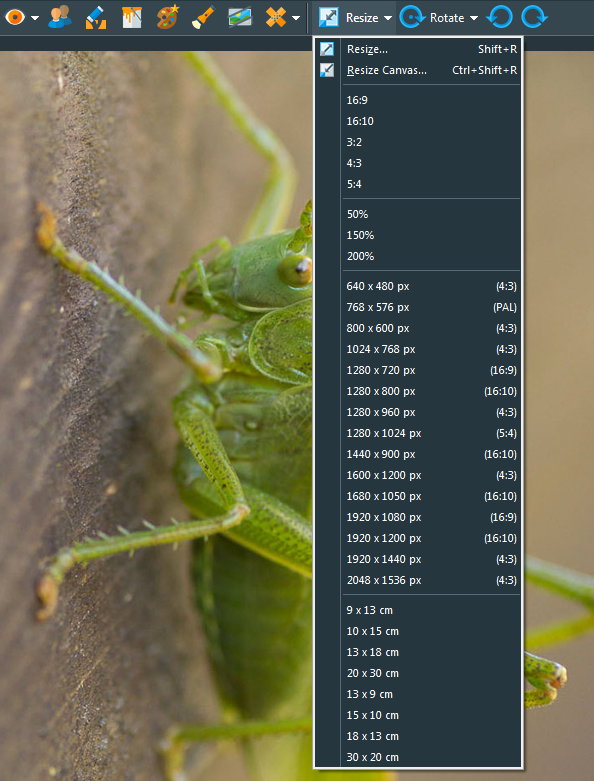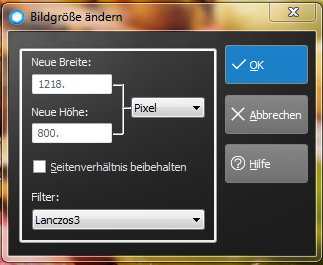 希望の測定単位を選択し、新しい幅と高さを入力します。画像を比例的にサイズ変更するには、比率を固定します。あなたは、あなたの画像で最高の結果を得るために、さまざまなフィルターを試すことができます。 「Lanczos3」は写真に最適です。