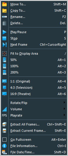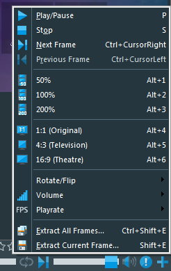 ビデオを右クリックするか、プラス記号を左クリックすると、コンテキストメニューが表示されます。これにより、再生中にビデオサイズやアスペクト比などのさまざまな面を調整することができます。