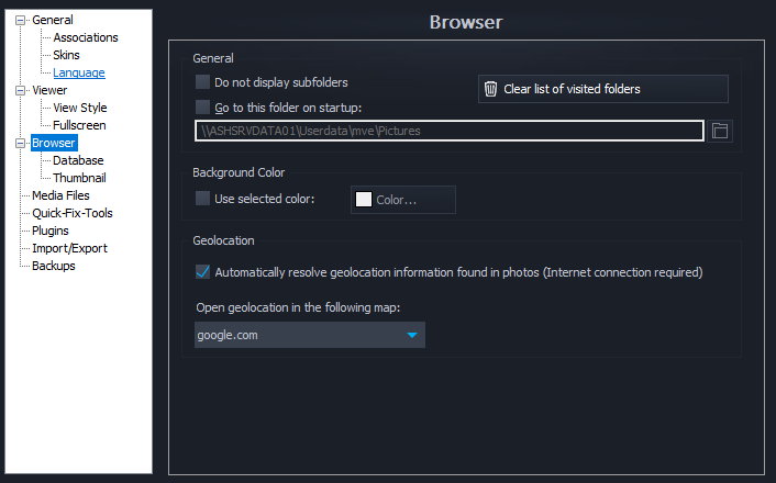 アプリケーションを起動するときに使用されるデフォルトのパスを指定します。この設定を無効にすると、プログラムに最後に開いたフォルダが記憶されます。