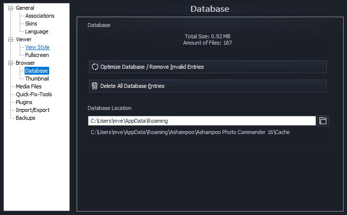 データベースの最適化/無効なエントリの削除
