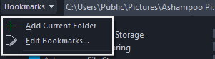 このドロップダウンメニューでは、現在のフォルダパスをブックマークすることができます。既存のブックマークを削除するには、[ブックマークの編集...]を使用します。